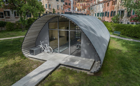Instalado en los Jardines de la Marinesa, el prototipo está diseñado para satisfacer las necesidades humanas básicas en cuanto a seguridad, comodidad y bienestar. Pensando en los flujos de desplazados que se han convertido en una realidad y que aumentarán en el futuro según las previsiones, la vivienda está adaptada para proporcionar un hogar con todo lo necesario para estas personas que pueden llegar a vivir décadas en asentamientos en principio temporales. Como complemento, una exposición en el Palazzo Mora, explica el desarrollo del proyecto a través de maquetas y fotografías.